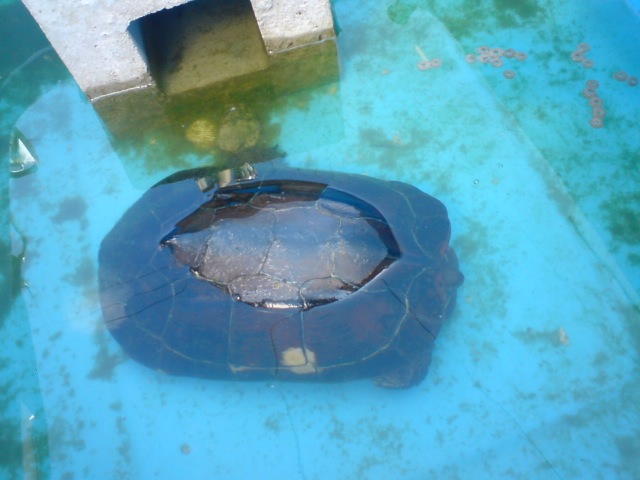 先日 捕まえた亀です。 今は「カメのえさ」というえさを与えてます。