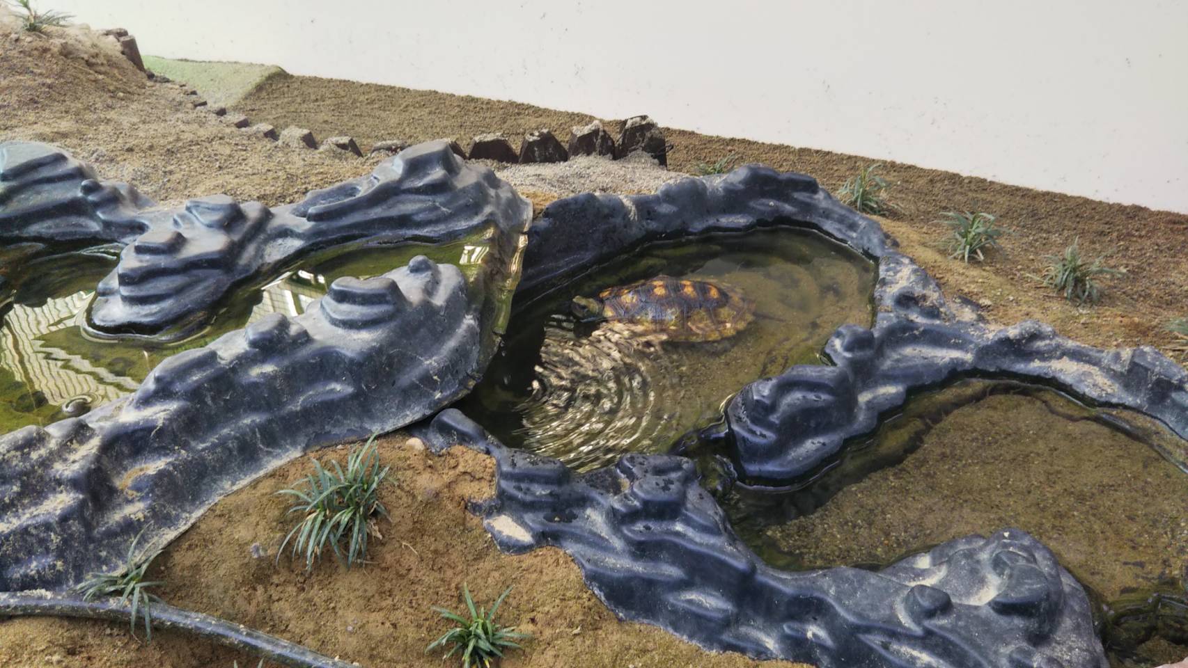 滝パネルの池の途中に うちのイシガメでは一番黄色い イエローさんが