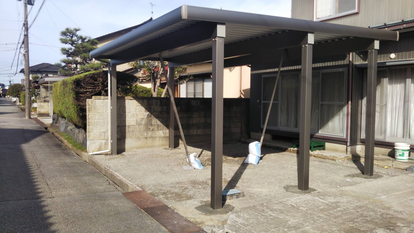 現在、カーポート工事中です。カーポートが無いと雨天積み込みが大変なのです。