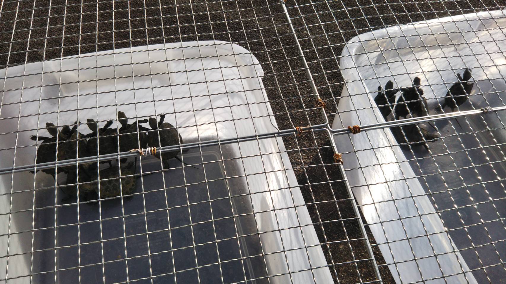 今年 生まれたコ亀(現在18匹)も強制的に日向ぼっこ。
