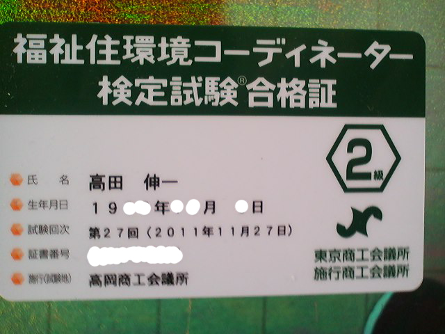 2級福祉住環境コーディネーター試験に合格しました。