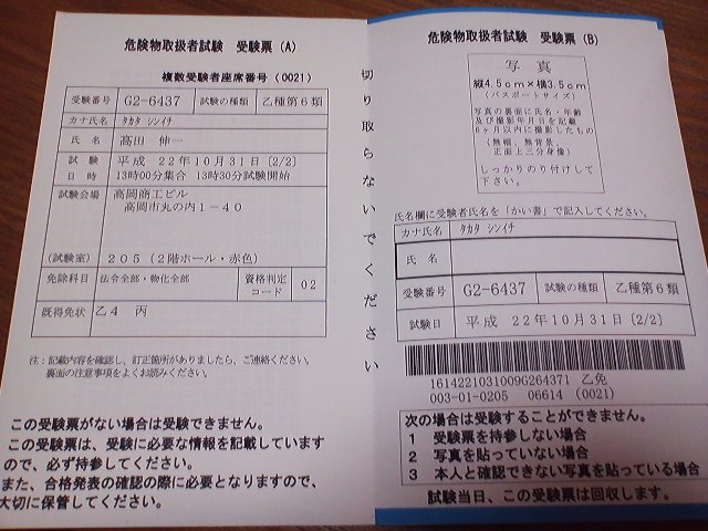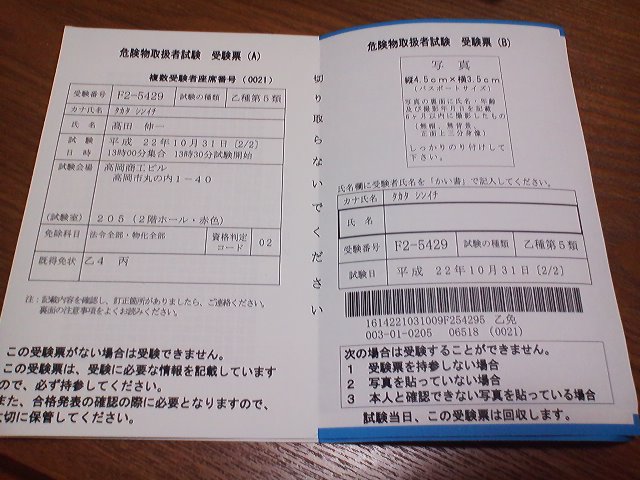 写真は受験票です。