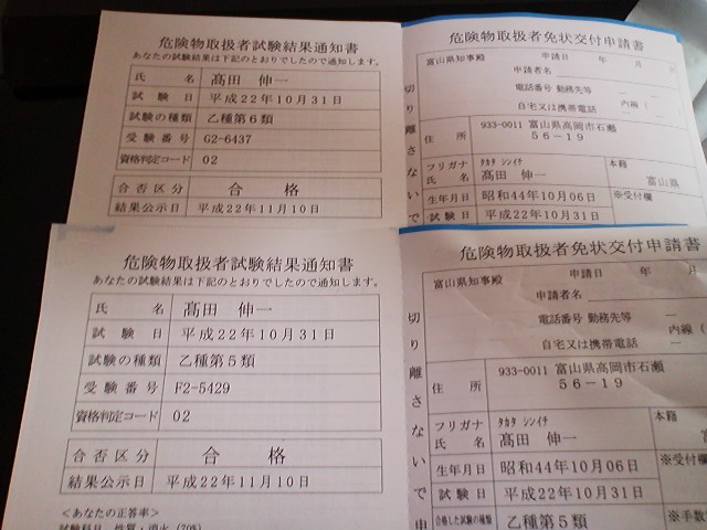 先日 国家資格の危険物取扱者の中の