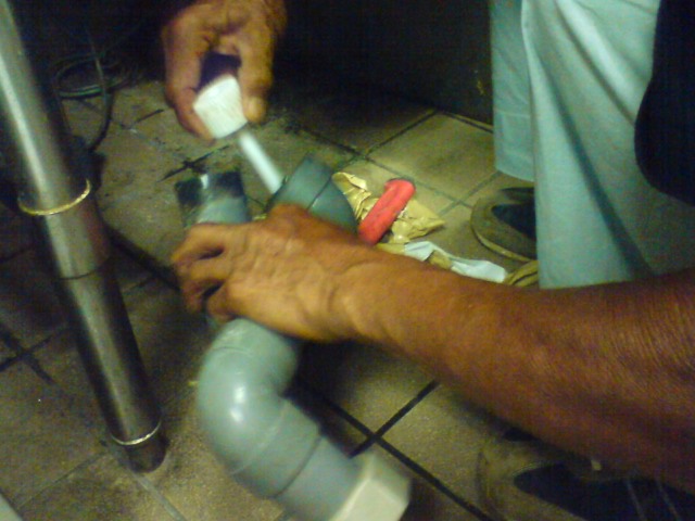 施工中写真です。 ボンドで配管修理中です。