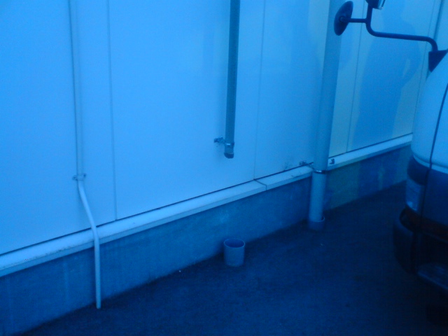 某建物の排水管の補修工事 施工前写真です。 排水管が壊れています。