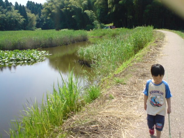 また ザリガニつりに出かけました。緑色の園芸用の棒に糸をつけて餌は おつまみのサキイカです。30分くらいで10匹釣れました。 ザリガニつりは魚と同じで しっかりとしたアタリ