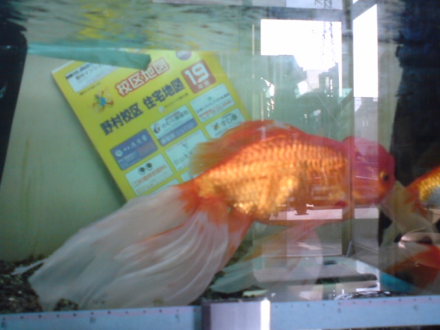 6月10日 金魚  事務所にある自家製水槽の金魚です。品種はジャンボオランダといい、草野金魚屋さんで購入しました。明け5歳オスです。現在、体長30センチくらいあります。しかし、水槽では もう限界かしばらく大きくなってません。