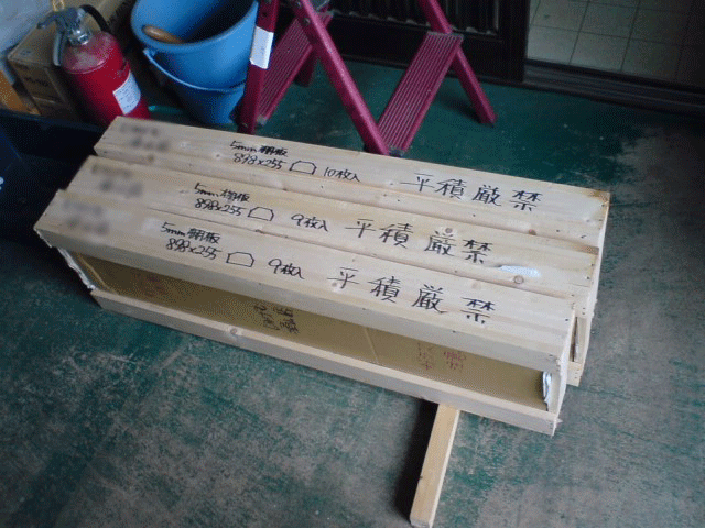 木枠梱包をして 硝子棚板を送る事も可能です。今回は山口県まで送ります。